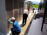 暑い日も寒い日もありますが、雨にも負けず、風にも負けず、福島の自然をダイナミックに感じながら一生懸命に掃除!お住いの方々とふれあいながら、事業所を離れてお仕事をしています。